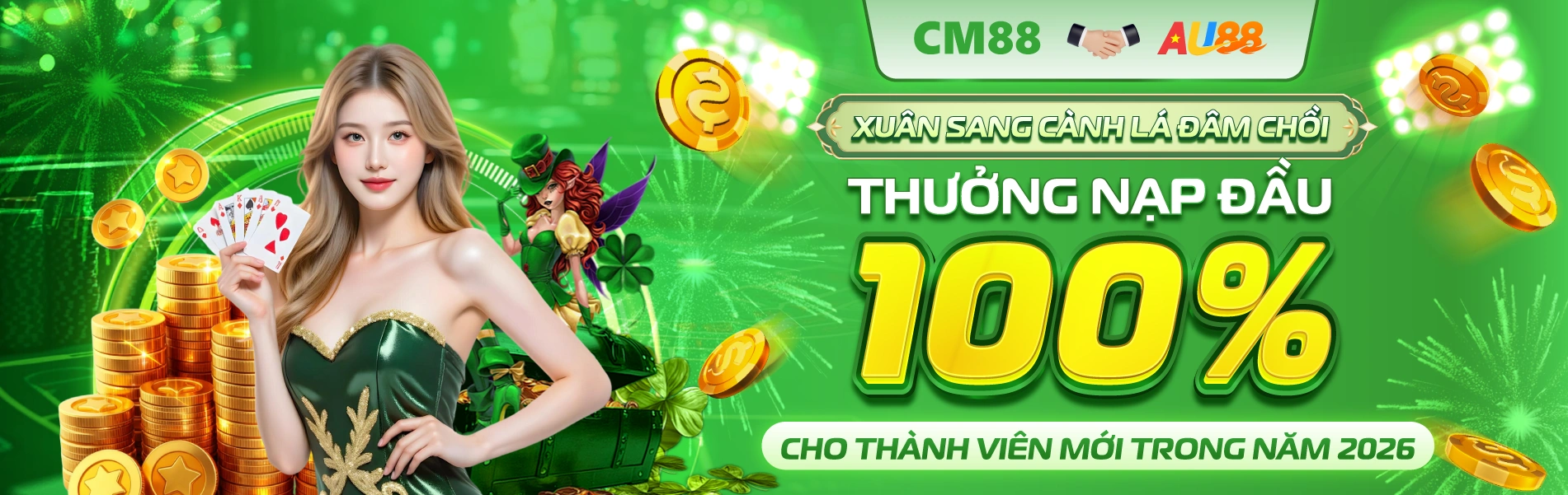 - Thưởng 100% nạp đầu